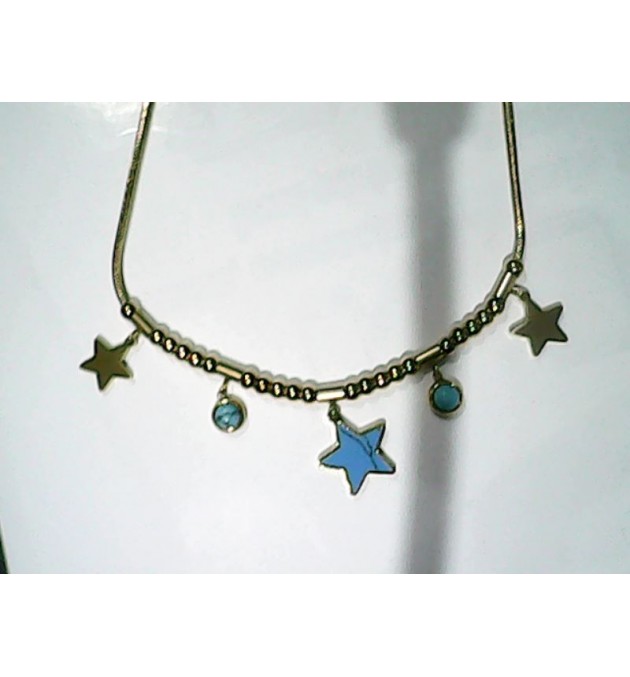 COLLIER ACIER DORE ETOILE BLEU 40/45CM