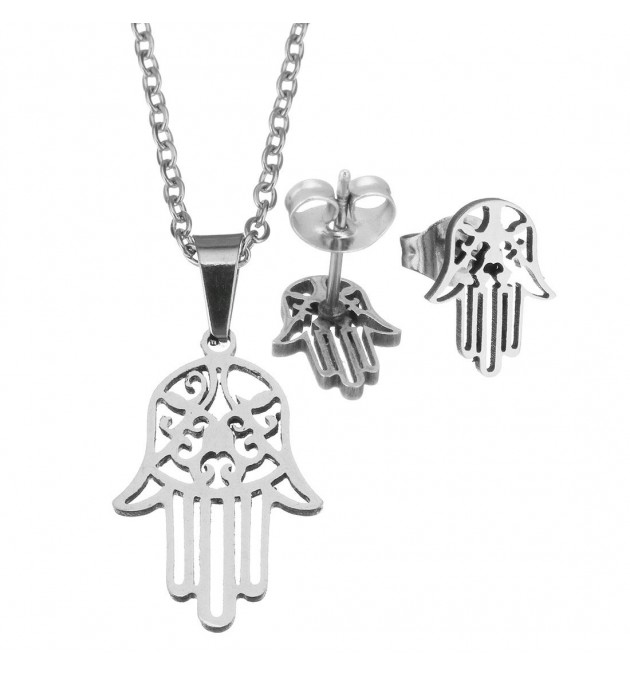 COFFRET COLLIER MAIN DE FATMA AVEC BOUCLE D OREILLE ACIER