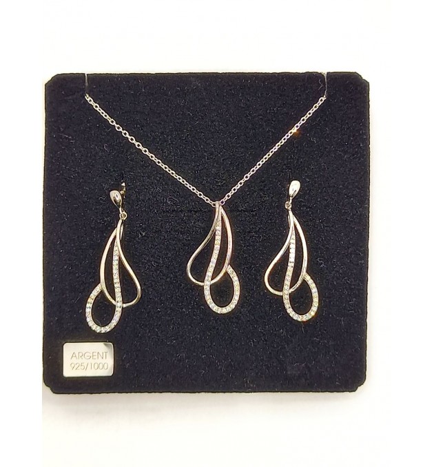Boucles d'oreilles et pendentif double gouttes avec oxydes