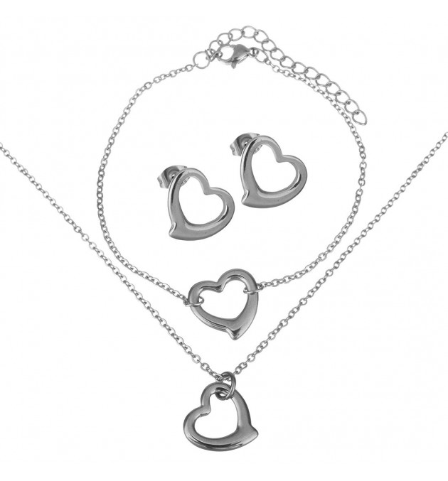 COLLIER DOUBLE COEUR PENDANT AVEC BOUCLE D OREILLE ACIER