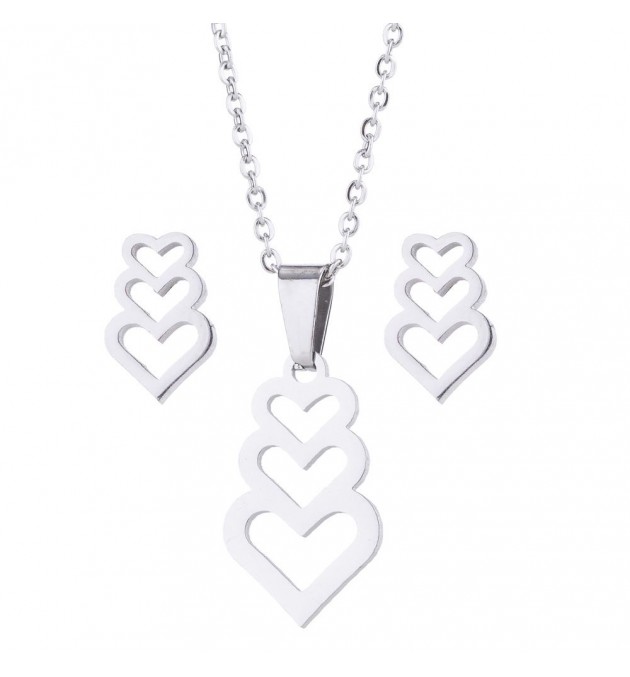 COFFRET COLLIER TRIPLE COEUR AVEC BOUCLE D OREILLE ACIER