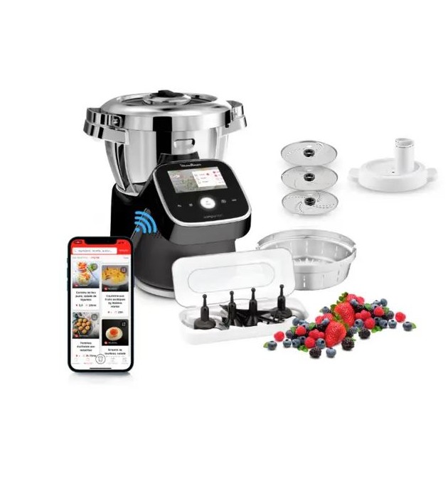 Cuisinez une grande diversité de plats, entrées et desserts, avec ce robot cuiseur multifonction connecté, ses 18 modes de fonctionnement dont le mode manuel et ses 6 accessoires