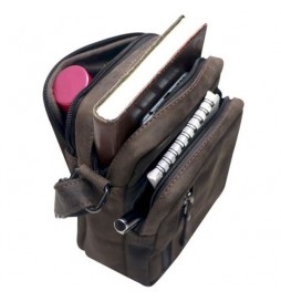 C' est un petit sac à bandoulière avec de nombreux compartiments pour femmes et hommes en cuir véritable.