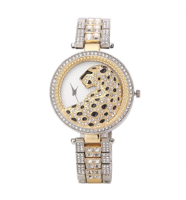 MONTRE LEOPARD METAL GRIS ET DORE