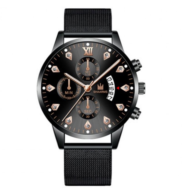 MONTRE SHAARMS NOIR ET OR ROSE AVEC DATE