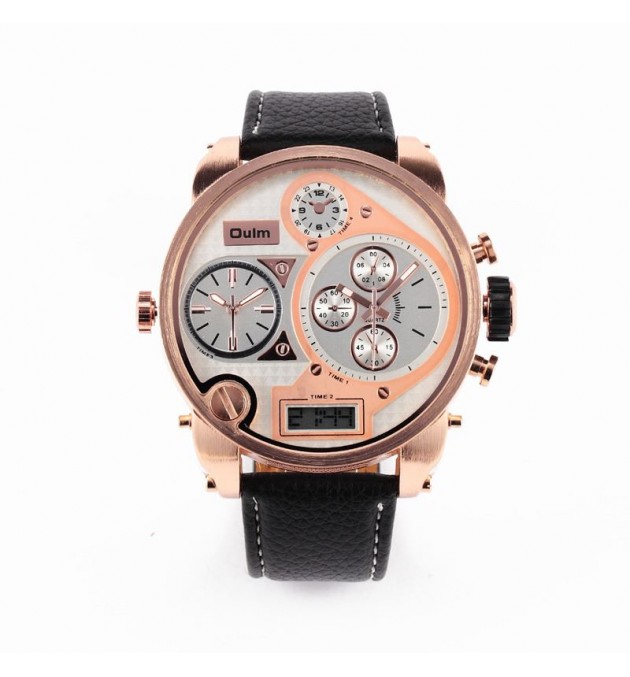 Montre Oulm Men Jewelry, cuir PU, avec cadran en alliage de zinc et verre, Placage, réglable pour homme, 57x57x15mm, 25mm, Longueur:Environ 10.2 pouce,