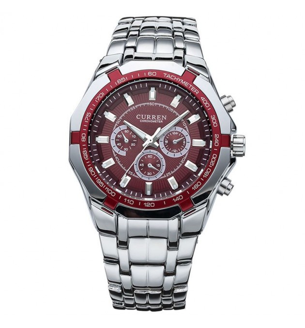 MONTRE CURREN 8084 GRIS FOND ROUGE