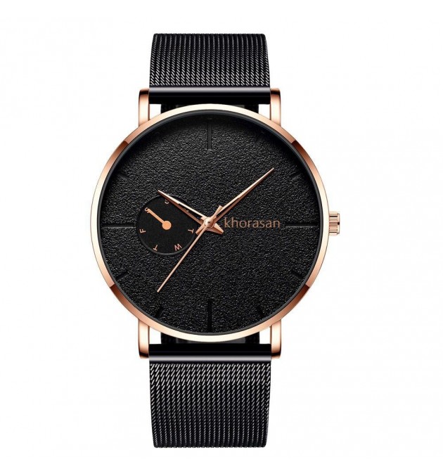 MONTRE KHORASAN NOIR AIGUILLE OR ROSE