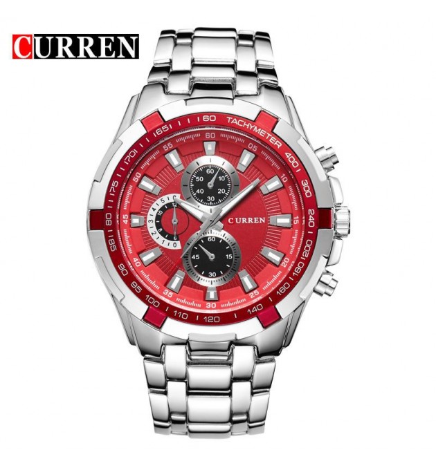 MONTRE CURREN 8023 SILVER CADRAN ROUGE