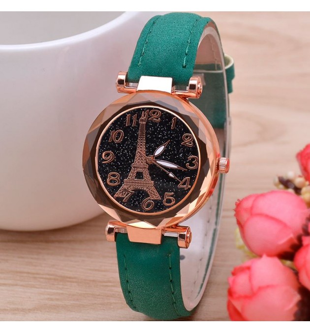 MONTRE TOUR EIFFEL VERT CADRAN OR ET NOIR