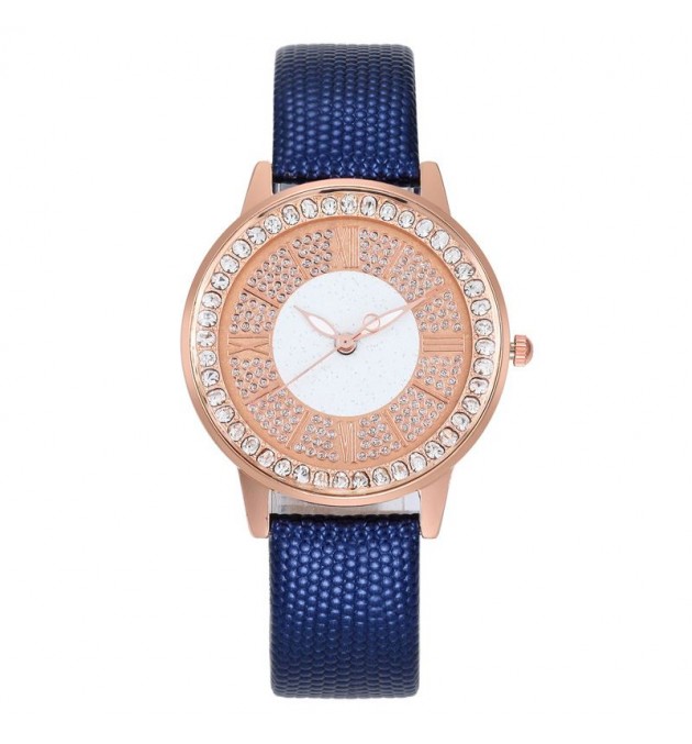MONTRE NONAME BRACELET BLEU CADRAN OR ET BLANC