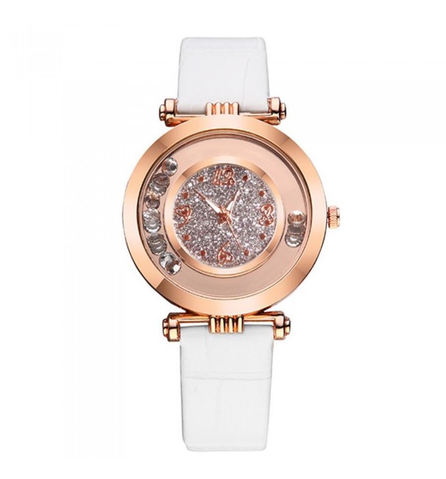 MONTRE NONAME BRACELET BLANC CADRAN OR ROSE AVEC OXYDE