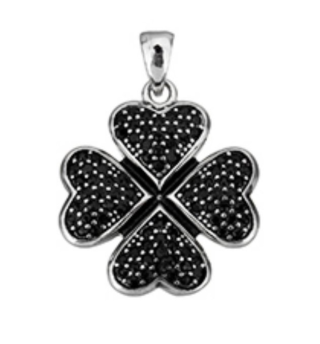 PENDENTIF ACIER TREFFLE COEUR NOIR