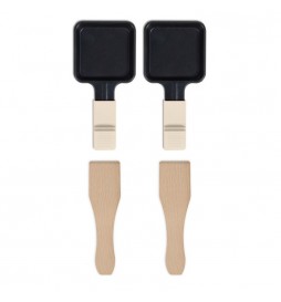 2 spatules en bois et 2 caquelons avec revêtement antiadhésif